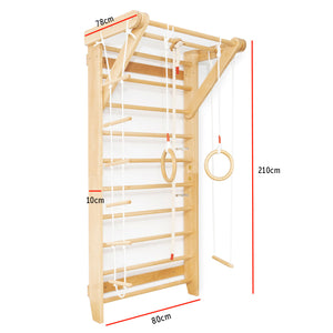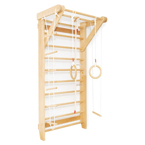 This model is made to adhere to the highest standards of reliability and safety for the wall bars gym structure. This universal home gym will serve you, help you keep fit and allow you to just have a great time for many years! A fitness station of this kind is perfect for developing various groups of muscles and improving the physical form of a child or adolescent as well as for maintaining or toning the body shape of an adult. Also, it is an excellent tool to relax the muscles, with options to perform a huge number of different stretching exercises.