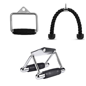 3 in 1 set Tricep Rope Extension + Single Handle + Triangle V Bar Gym Cable Attachment