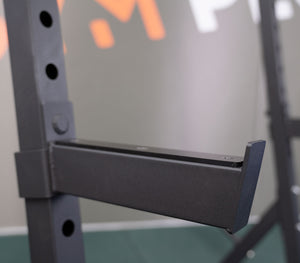 • Safety spotter arms with high density plastic liners (30cm usable length)