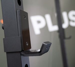 This rack comes complete with heavy duty j-cups, safety spotter arms, weight plate pegs, adjustable pull-up bar and optional dip handles and landmine attachments, all finished in a smooth surface with a matte black powder coating.