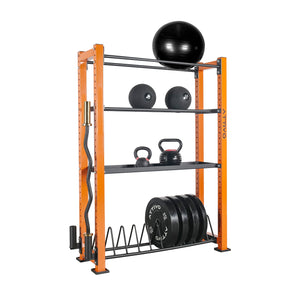 Keep your gym looking clean and professional with our Single Bay Gym Storage System. Perfect for storing bumper plates, kettlebells, medicine balls, exercise balls and more. Includes holders for two Olympic bars. Strong, solid and reliable.