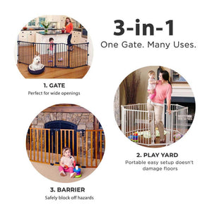 3-In-1 Super Wide Adjustable Baby Safety Gate and Play Yard Pet Playpen - Multiple Size